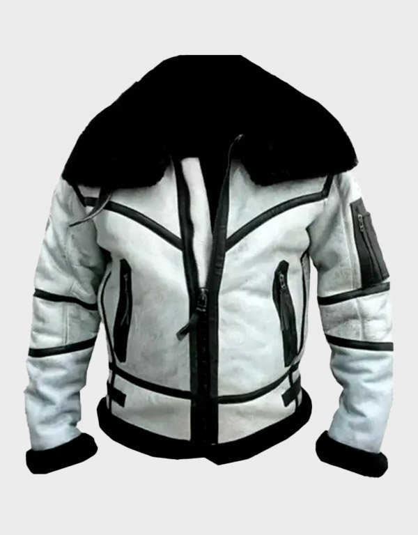 Aviator B3 Flight White Bomber Leather Jacket