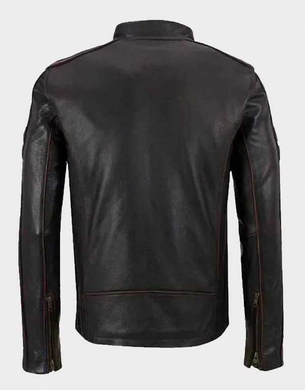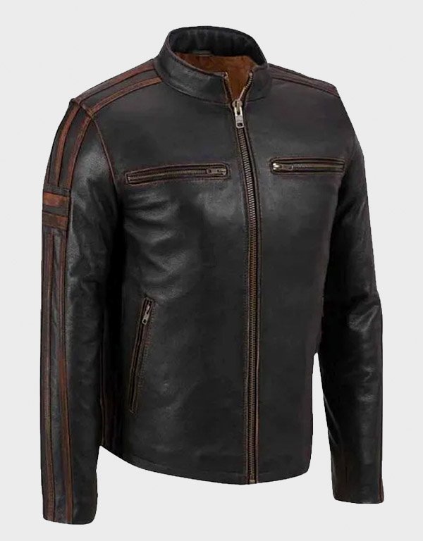 Men’s Brown Stripe Cafe Racer Leather Jacket – Vintage