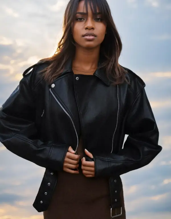 Cropped Black Leather Motorcycle Jacket
