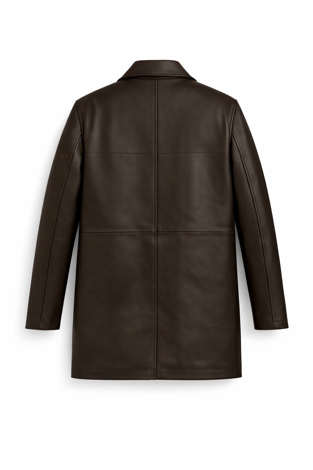 Designed with a button-up front, a structured collar, and side pockets for practicality, this leather coat is ideal for winter, evening events, or everyday wear. A versatile piece that speaks sophistication.