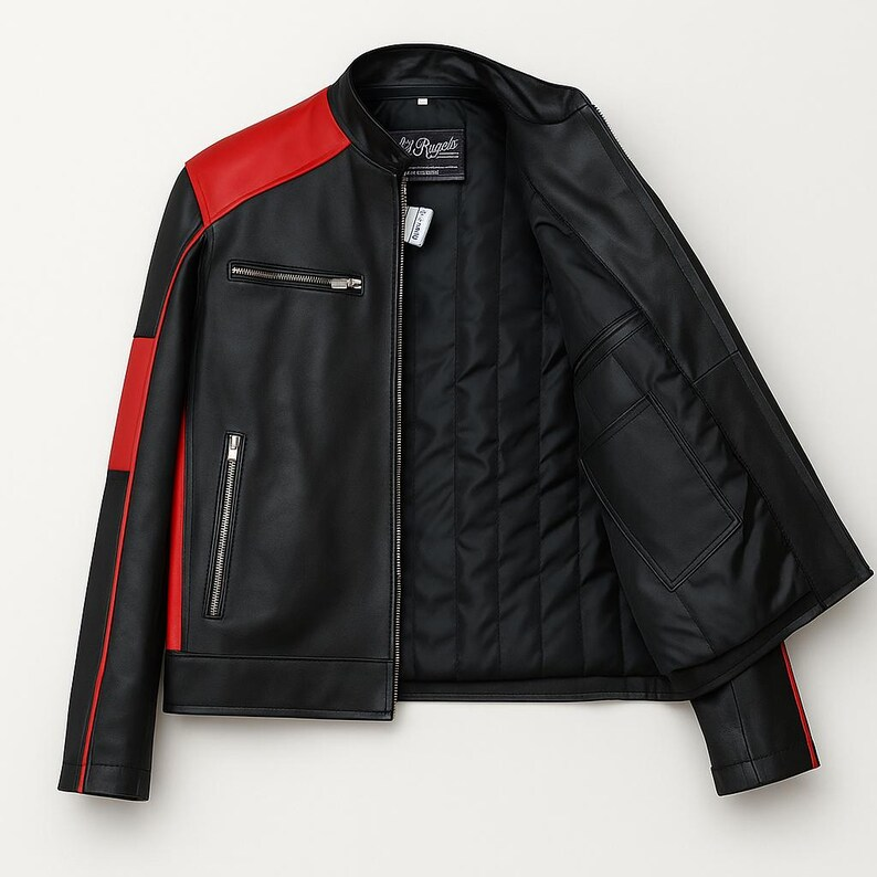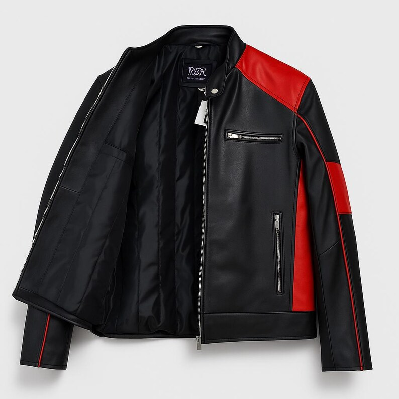Step up your style game with our Black & Red Sheepskin Leather Biker Jacket, designed in a classic cafe racer moto style. Crafted from premium, soft sheepskin leather, it offers unmatched comfort and durability. The jacket features a sleek zip closure, a bold red paneling contrast for standout looks, and multiple pockets for convenience. It’s perfect for daily wear or weekend rides — blending rugged toughness with smooth style. Lightweight yet warm, this jacket is your go-to for year-round fashion and protection. Upgrade your wardrobe with this edgy, versatile piece that defines modern biker cool.