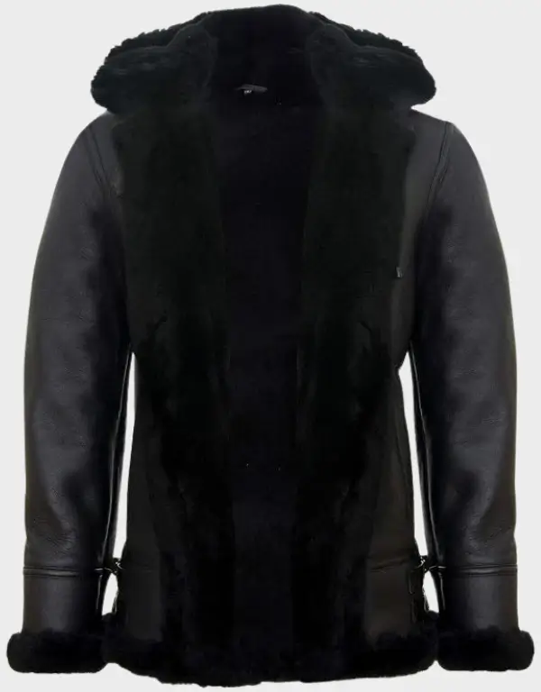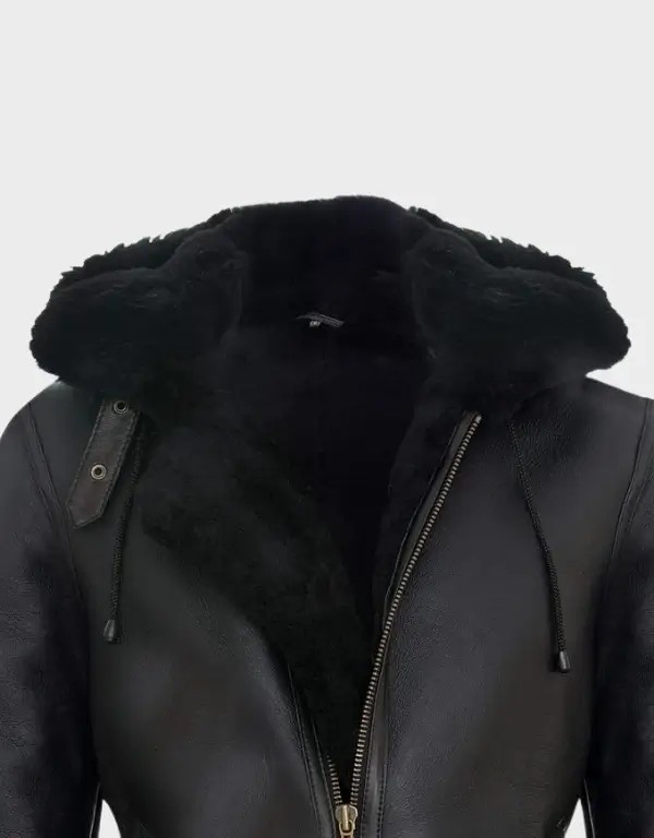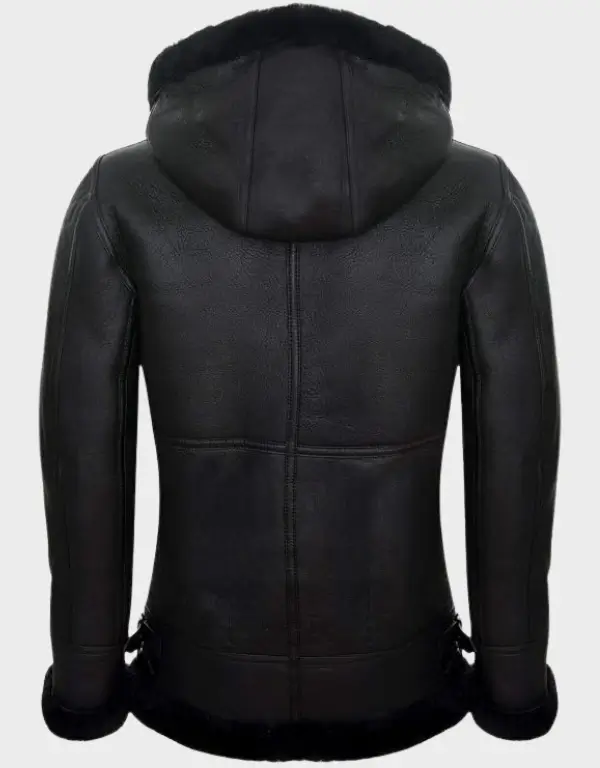 Men’s Black Sheepskin Hooded B3 Aviator Bomber Jacket