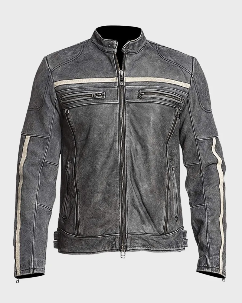 Men’s Distressed Cafe Racer Leather Biker Jacket