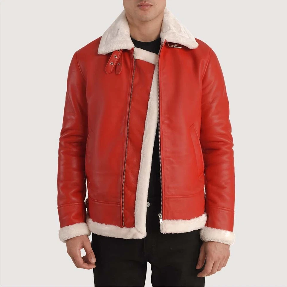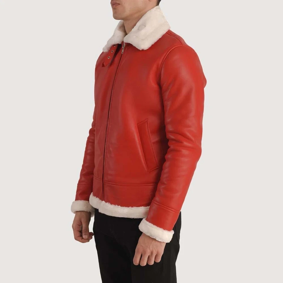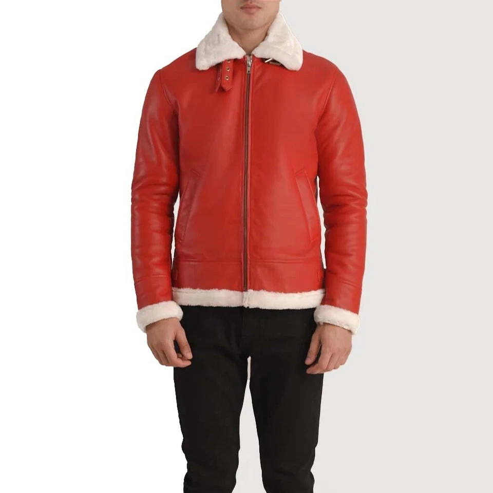 Men’s Red Lambskin Leather Santa Jacket | Festive Christmas Style