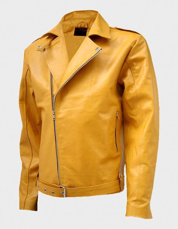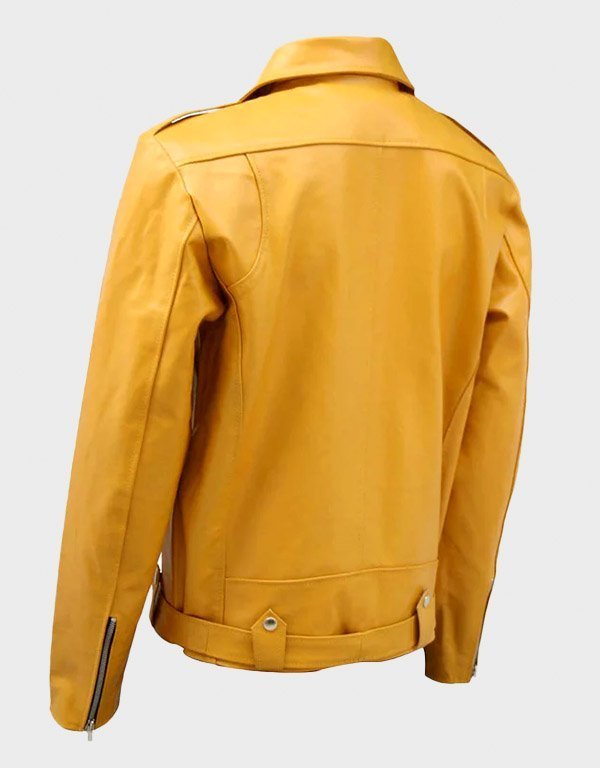 Revamp your wardrobe with the striking men’s yellow leather jacket, a perfect blend of style and functionality for the modern man. This mens yellow leather motorcycle jacket is designed for those who dare to stand out while embracing the timeless appeal of biker fashion.