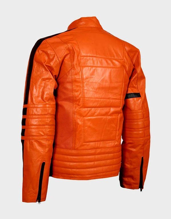 The Orange Leather Biker Jacket makes a bold statement with its vibrant, eye-catching color and rugged motorcycle style. Crafted from premium genuine leather, this jacket offers durable protection and a comfortable fit for everyday wear or the open road. Key features include a heavy-duty front zipper, adjustable waist straps, and padded elbows to keep you safe and stylish. Perfect for riders and fashion-forward men alike. Important specs: 100% genuine leather, bright orange color, padded elbows, adjustable waist, sturdy zipper.