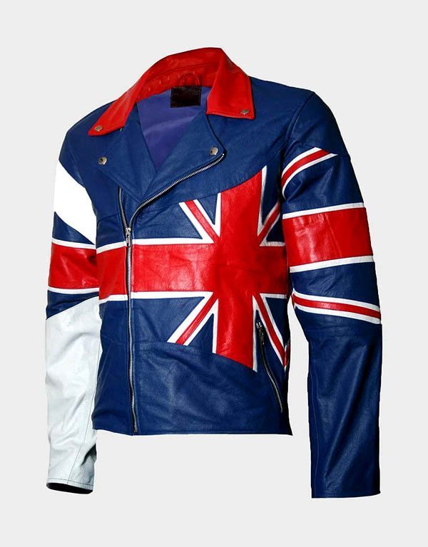 This jacket commands attention with its wide studded collar, sleek YKK front zipper, and iconic Union Jack design across the body. Zippered sleeves, twin side pockets, and two inner pockets add functionality without sacrificing flair. Whether you’re riding through the city or walking into a gig, this jacket doesn’t whisper style—it shouts it.