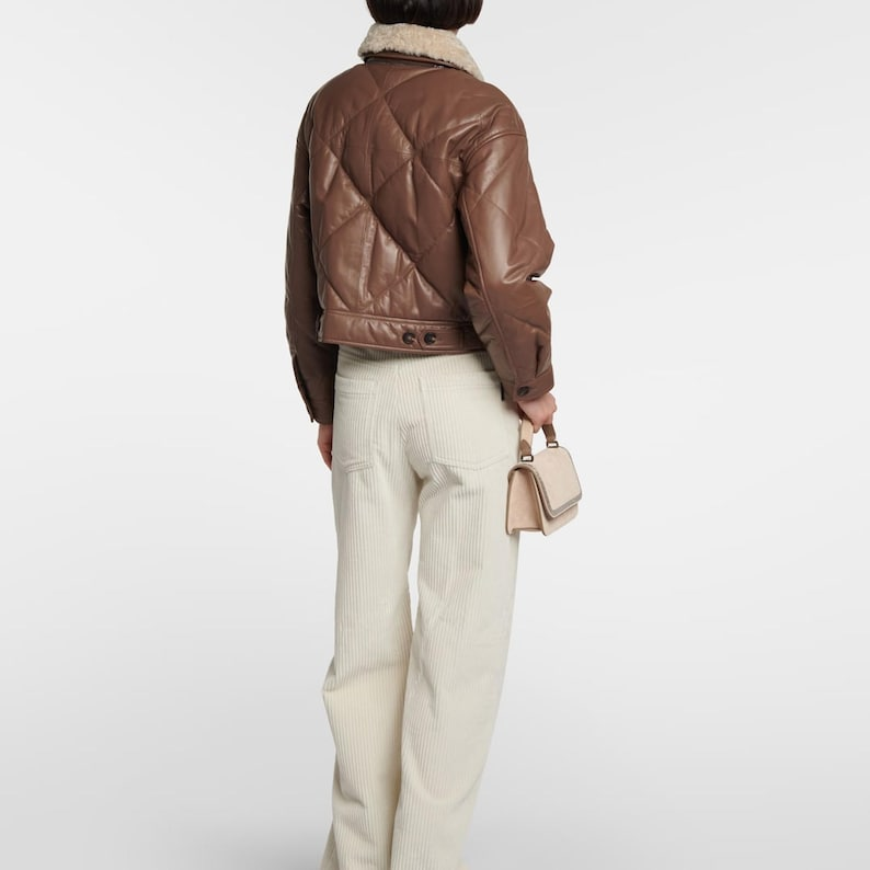 Be the first to review “Vintage Quilted Leather Jacket with Brown Shearling Collar” Cancel reply