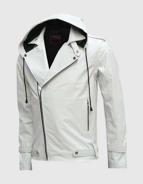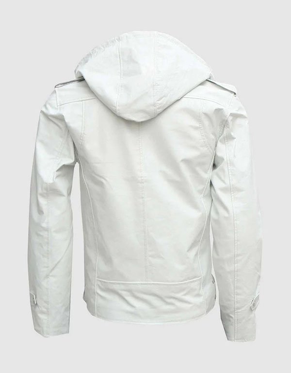 Men’s White Hooded Leather Jacket – Stylish & Versatile