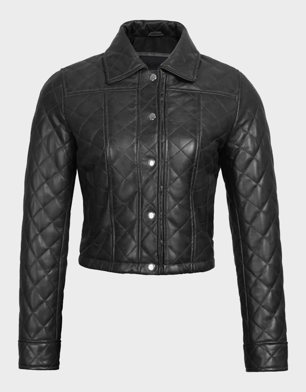Women’s Black Quilted Cropped Leather Jacket – Stylish Outerwear: