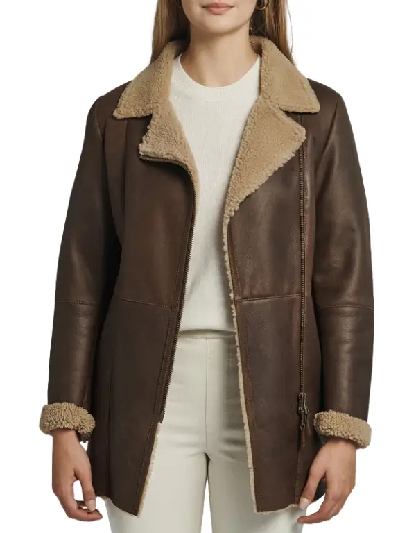 Women’s Brown Sheepskin Shearling Coat – Luxe Warmth