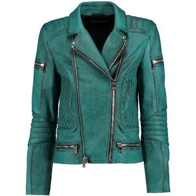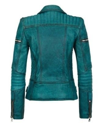 Women’s Slim Fit Diamond Quilted Teal Moto Distress Leather Jacket