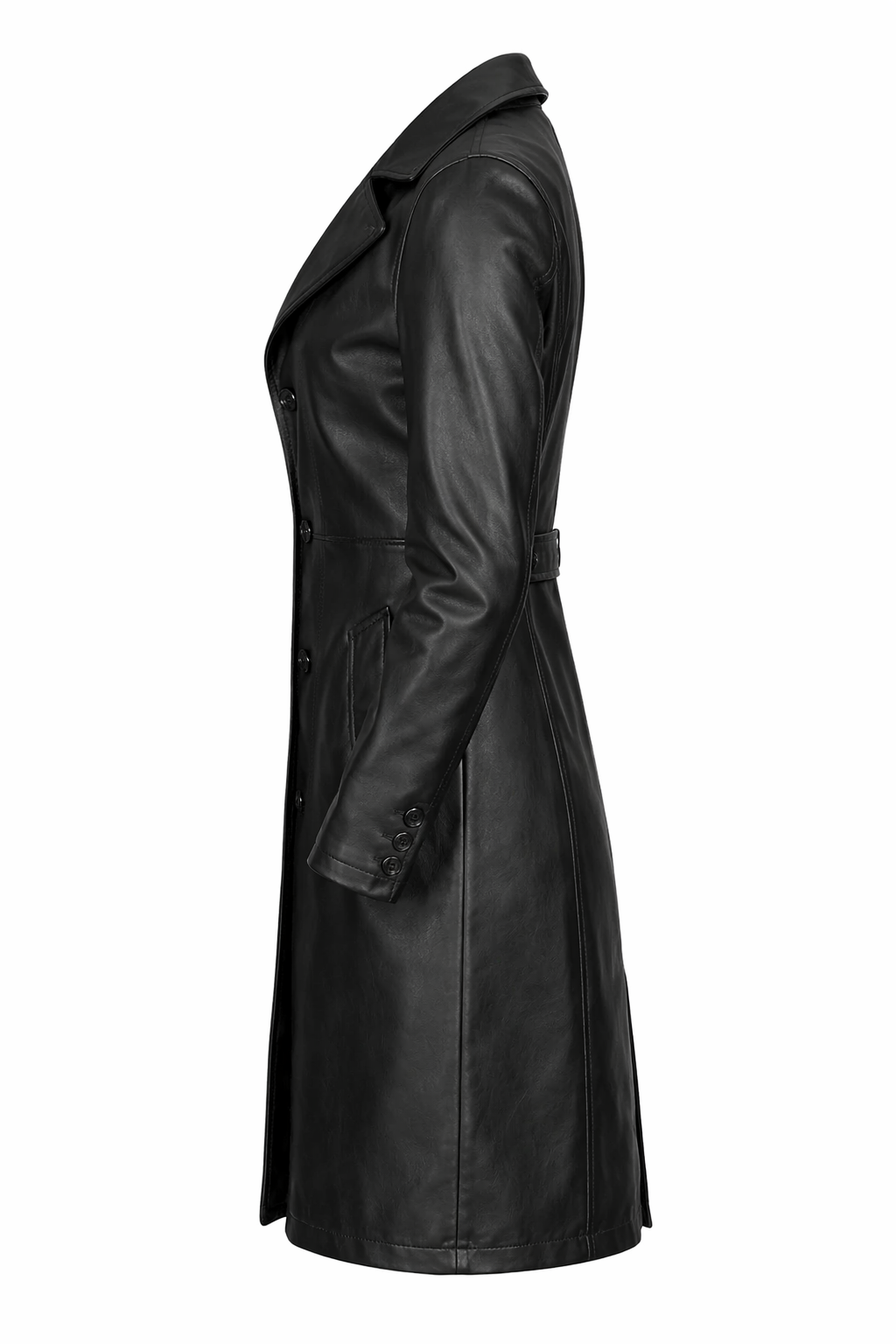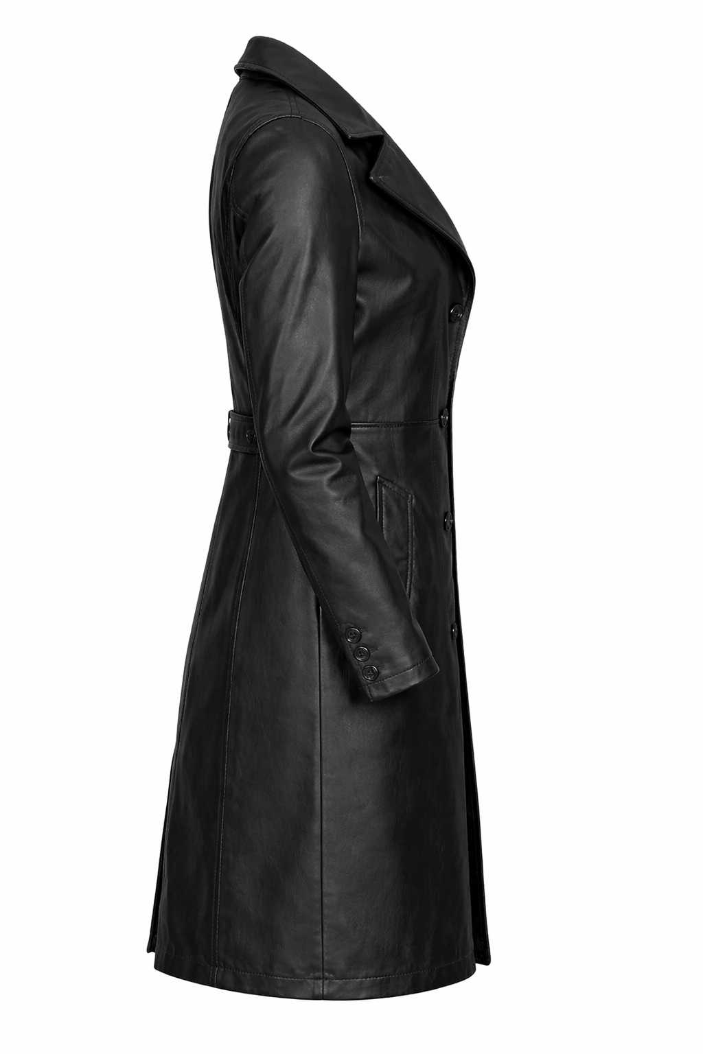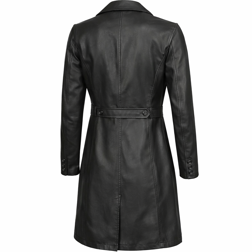 Women’s Tall Black 3/4 Leather Coat | Stylish Mid-Length
