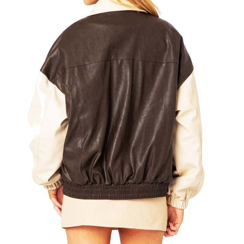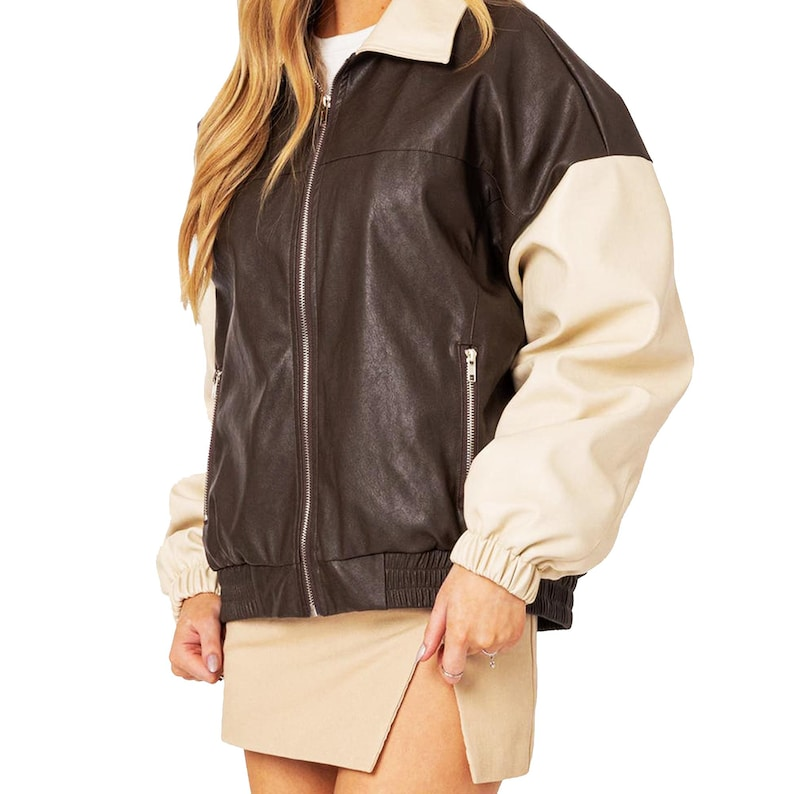 Women's Two-Tone Lambskin Leather Bomber Jacket – 90s Vintage Style